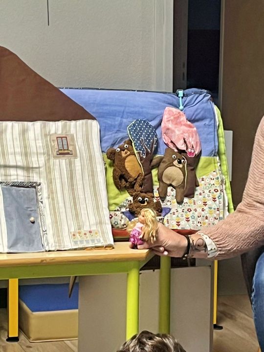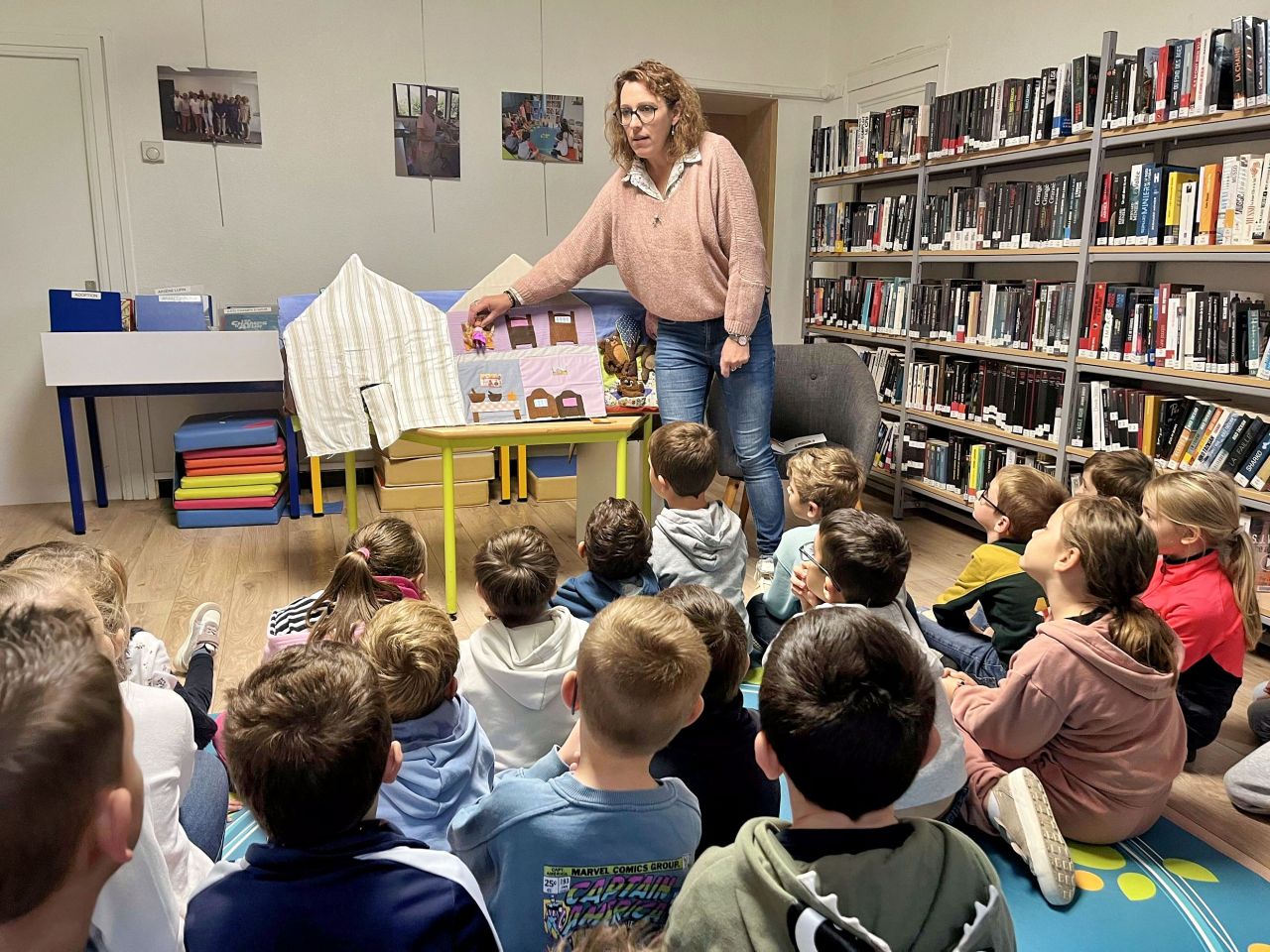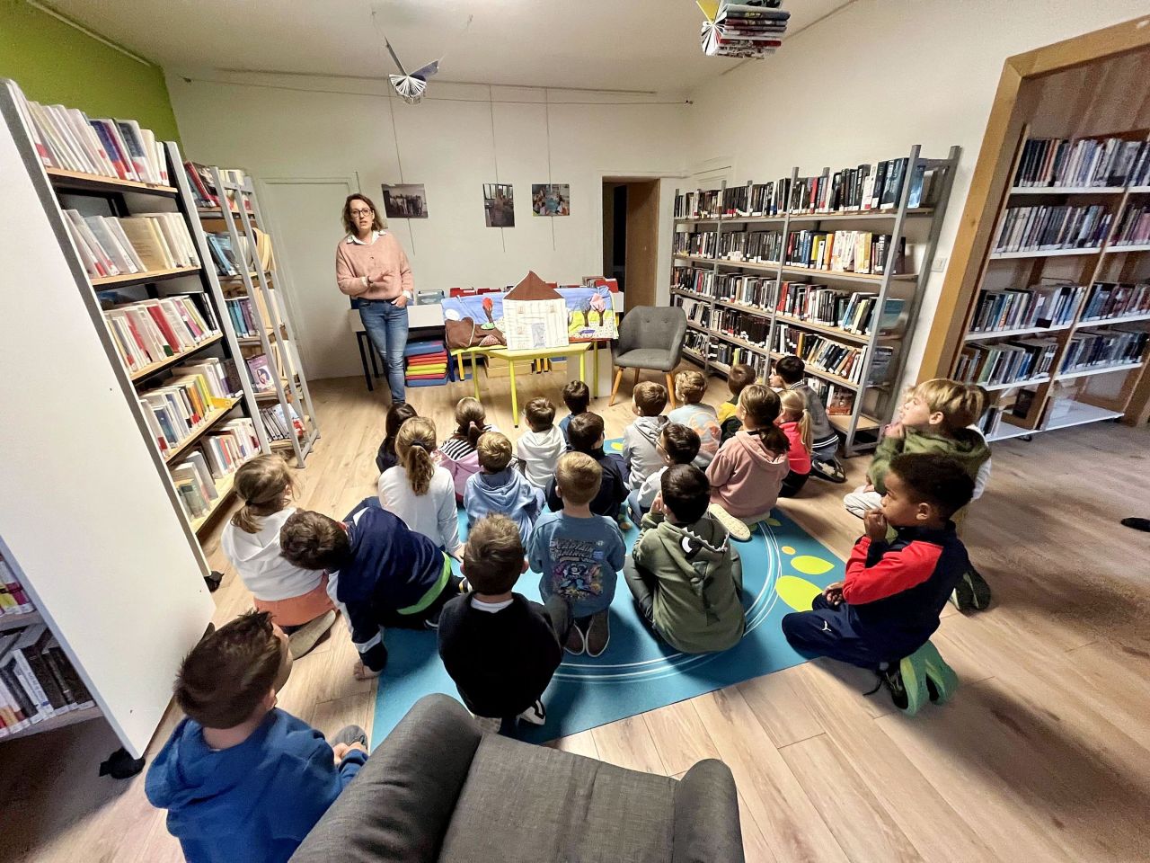 Toutes les trois semaines, tous les élèves de l’école vont à la bibliothèque pour un temps de recherche de livres et un temps très prisé d’écoute d’une histoire par Tatiana.